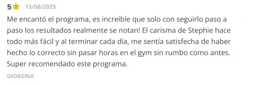 Hoy, Stephanie pone en tus manos este sistema probado como la forma definitiva para dejar de entrenar “a ciegas” y construir tu mejor físico con certeza absoluta… en solo 8 semanas.
